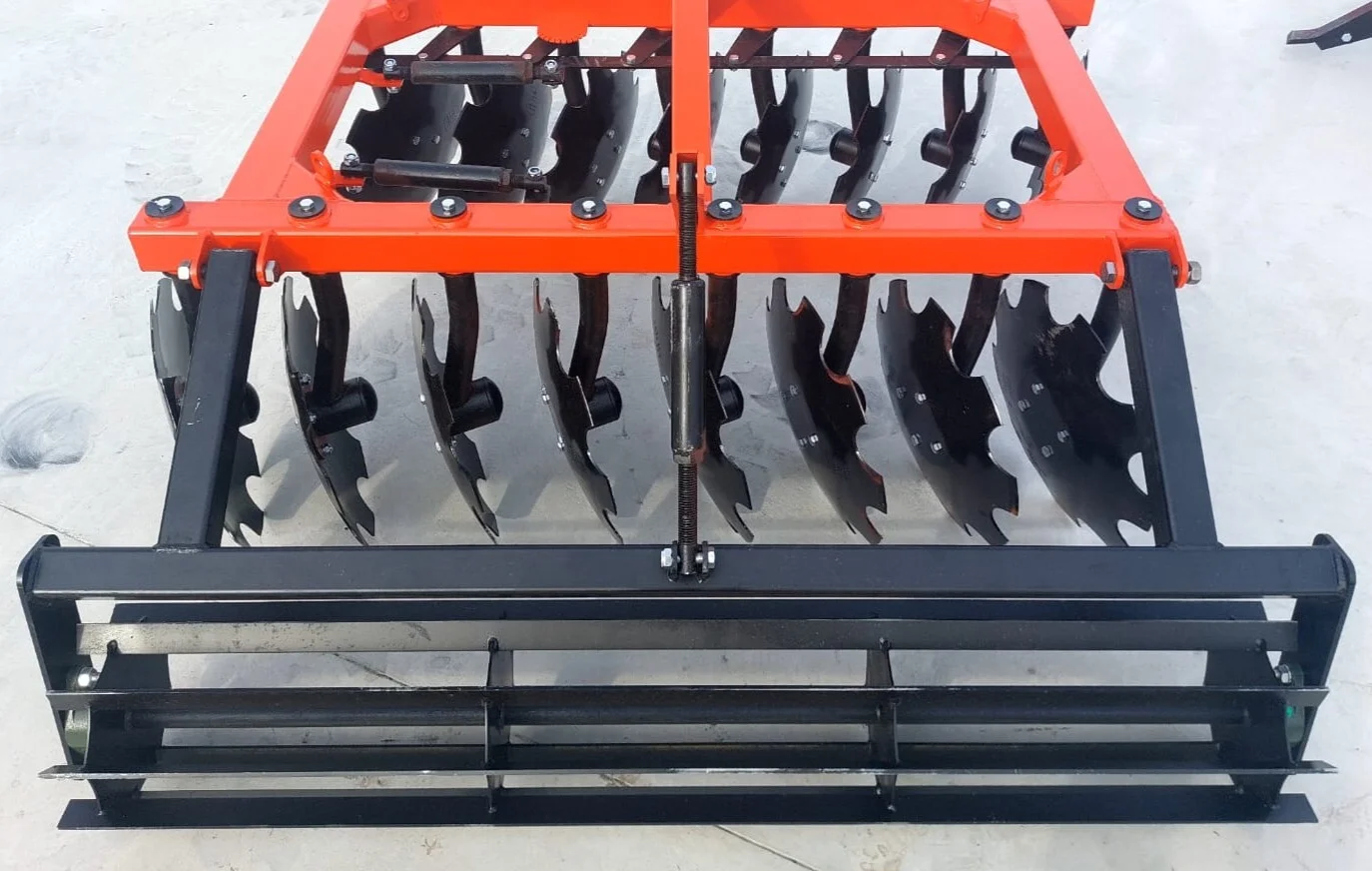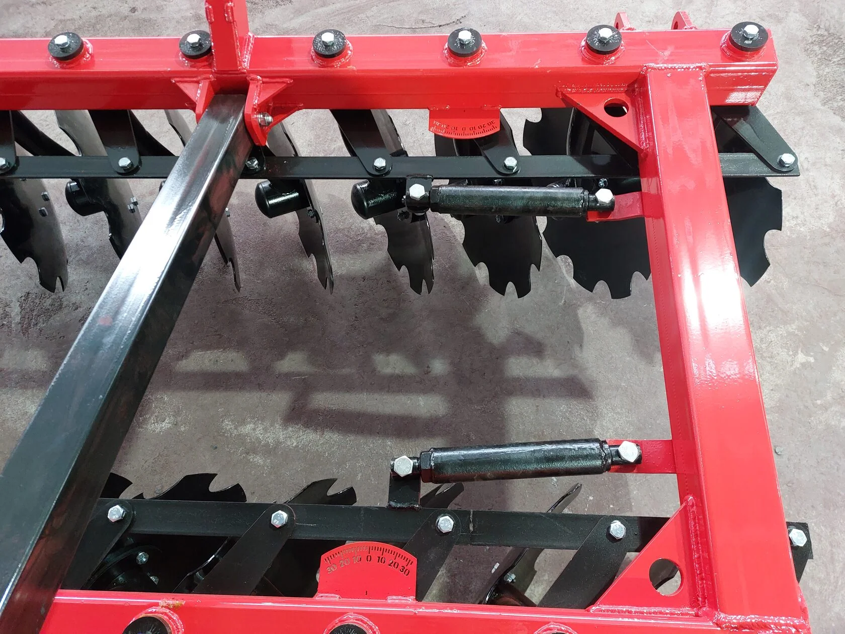 Конструкция бороны позволяет регулировать угол атаки каждого ряда дисков в пределе от 0° до 25°, тем самым позволяя оптимально настроить орудие для различных типов почв.