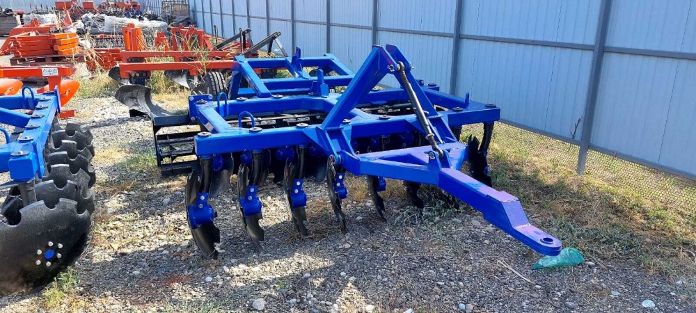 Конструкция бороны позволяет регулировать угол атаки каждого ряда дисков в пределе от 0° до 25°, тем самым позволяя оптимально настроить орудие для различных типов почв.