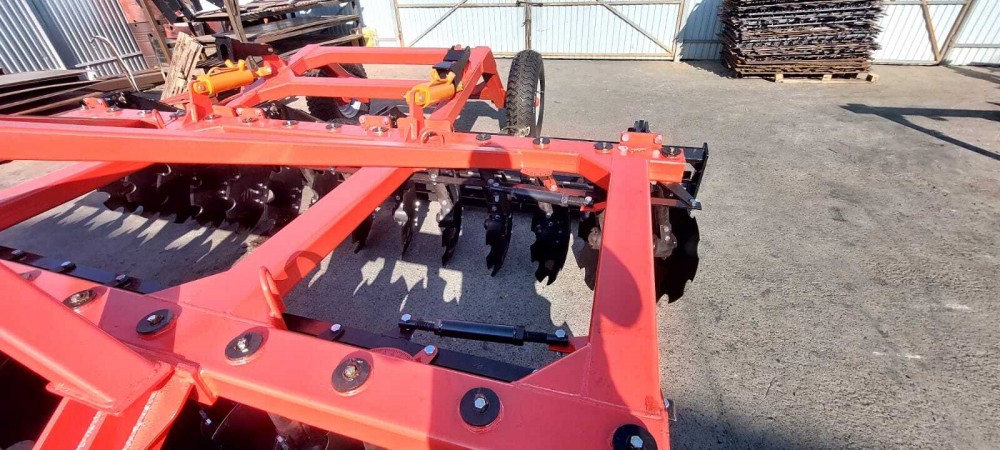 Конструкция бороны позволяет регулировать угол атаки каждого ряда дисков в пределе от 0° до 25°, тем самым позволяя оптимально настроить орудие для различных типов почв.