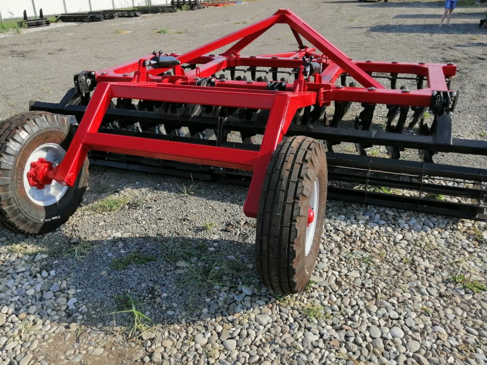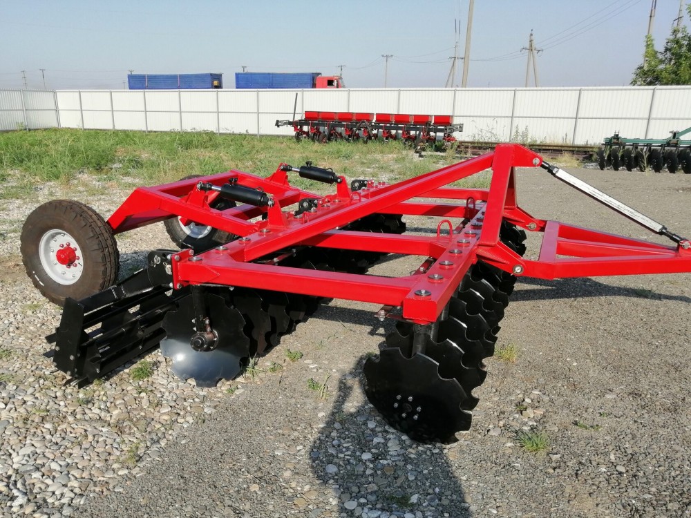 Конструкция бороны позволяет регулировать угол атаки каждого ряда дисков в пределе от 0° до 25°, тем самым позволяя оптимально настроить орудие для различных типов почв.