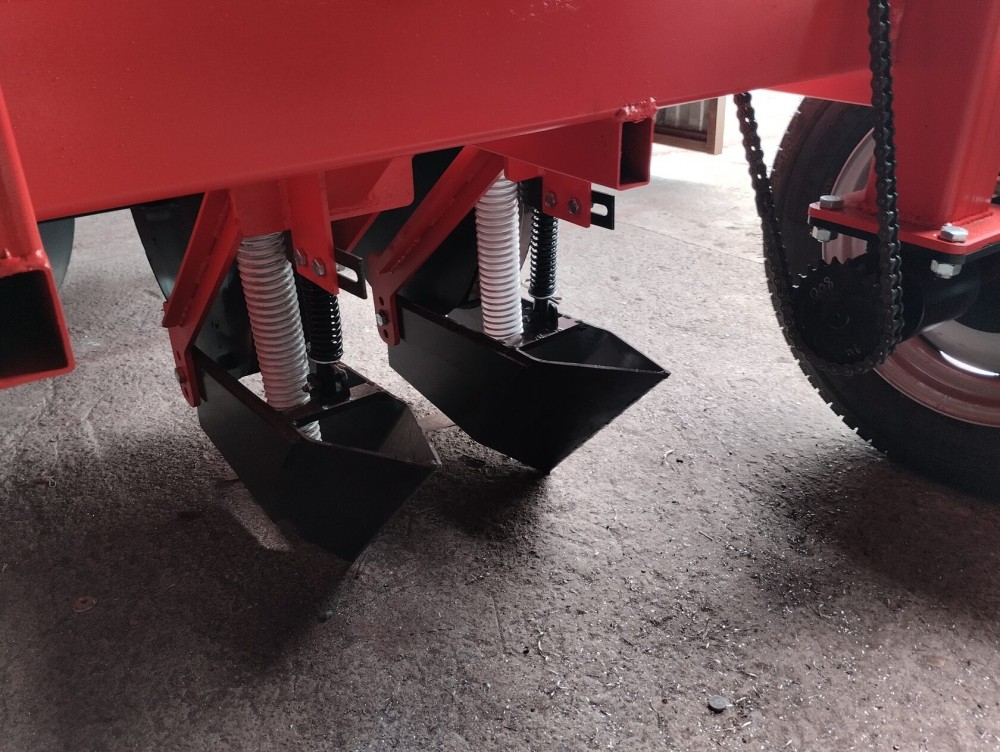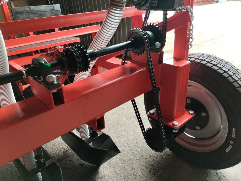 Картофелесажалка предназначена для рядковой посадки пророщенных клубней картофеля под спаренный ряд c укладкой ленты капельного полива с одновременным внесением удобрений. При снятых высаживающих аппаратах допускается применение сажалки для послевсходового окучивания и подкормки картофеля. Привод высаживающих и туковысевающих аппаратов осуществляется от колеса посредством цепной передачи. Картофель на сажалке находится в ящиках, которые располагаются на полках этажерки. Загрузка картофелесажалки минеральными удобрениями производится вручную с транспортного средства или специально оборудованными автомобилями. Влажность минеральных удобрений должна быть не более 20%, величина комков – не более 5мм. Рельеф поля должен быть ровным с уклоном местности не более 8º.