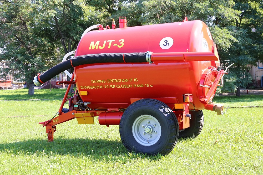 МЖТ-3 предназначена для самозагрузки, транспортировки, перемешивания и сплошного поверхностного внесения жидких органических удобрений, перевозки технической воды, мойки машин, дорог, пожаротушения. Благодаря наличию универсального вакуум-компрессора наполняется за 5-6 минут с глубины до 2 метров, и на скорости 6-12 км/ч жидкие органические удобрения вносятся на ширину 4-6 метров. В бочке установлена перегородка, которая предаёт жёсткость резервуару и защищает машину от гидроудара при движении.