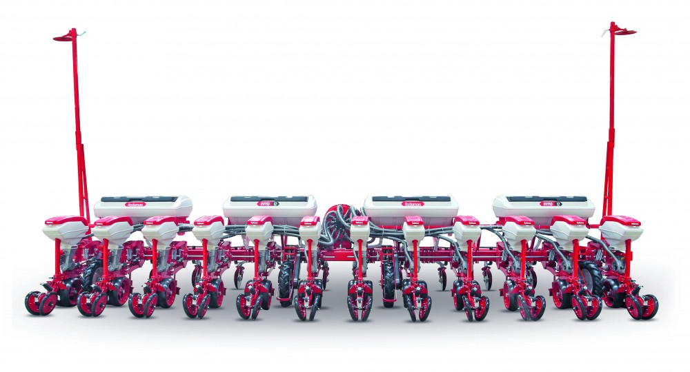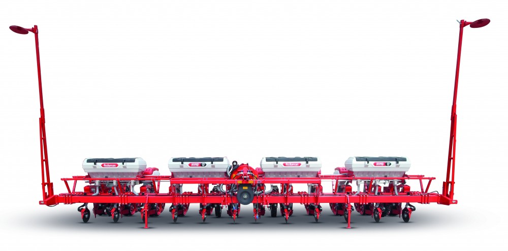 HVMD – универсальные пневматические сеялки предназначены для точного высева калиброванных семян кукурузы, подсолнечника, клещевины, сорго, сои, а также семян кормовых бобов, фасоли, люпина с одновременным, раздельным от семян внесением гранулированных минеральных удобрений дисковым сошником и прикатыванием почвы V-образными катками в рядках.