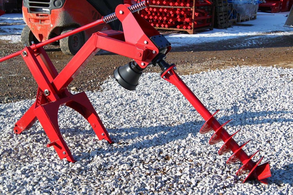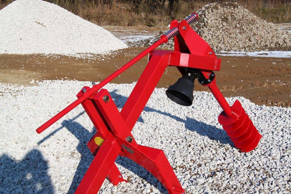 Бур предназначен для бурения отверстий в земле при посадке деревьев, кустов, установке столбов и т д. Машина может бурить в земле вертикальные отверстия глубиной до 60 см при диаметре бура Ø 50 мм и до глубины 90 см при диаметре бура Ø 25 мм. Регулируя частоту вращения вала отбора мощности (ВОМ) можно устанавливать ширину рассыпанной земли при бурении отверстий.