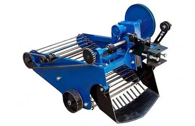 Картофелекопалка транспортерная РУСТРАК для ременных минитракторов и тяжелых дизельных мотоблоков - предназначена для выкапывания клубней и тщательной очистки их от грунта. Она агрегатируется с ременными минитракторами и тяжёлыми мотоблоками мощностью от 10 л.с. Картофелекопалка обеспечивает уборку картофеля на рабочую глубину до 28 см.