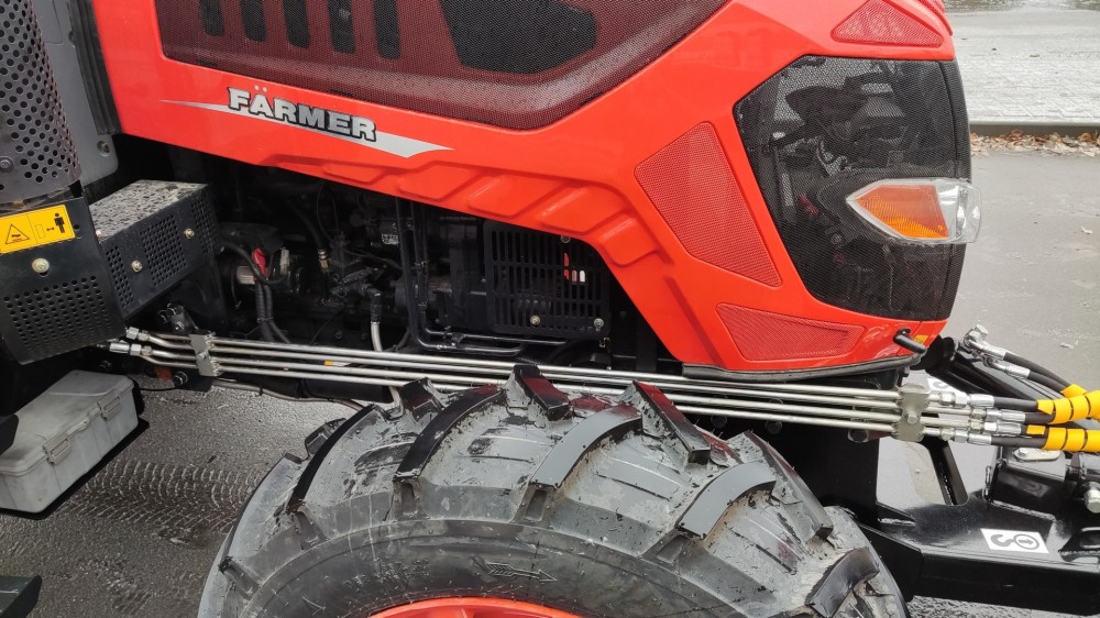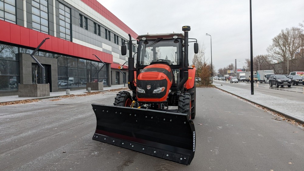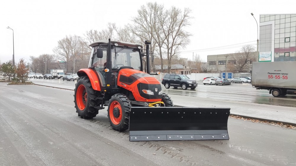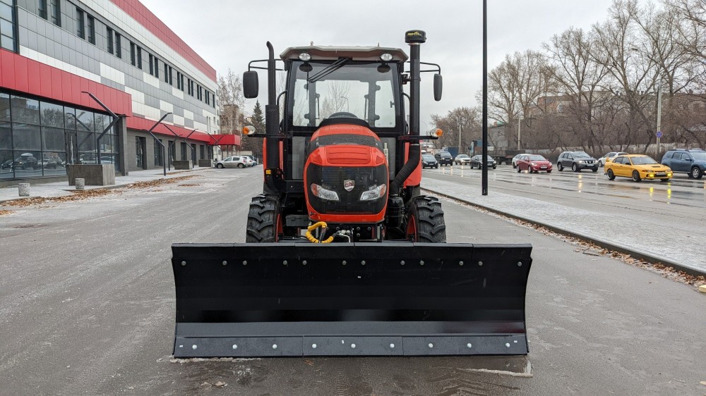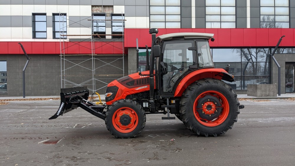 Два комплекта ножей на одном отвале путём разворота на 180 градусов позволяют убирать как рыхлый свежевыпавший снег, используя резиновые ножи, не травмируя покрытие дорог, так и слежавшийся замерзший, накатанный снег, подрезая ледяную корку металлическим ножом. Отвал агрегатируется с трактором FARMER FL 904.