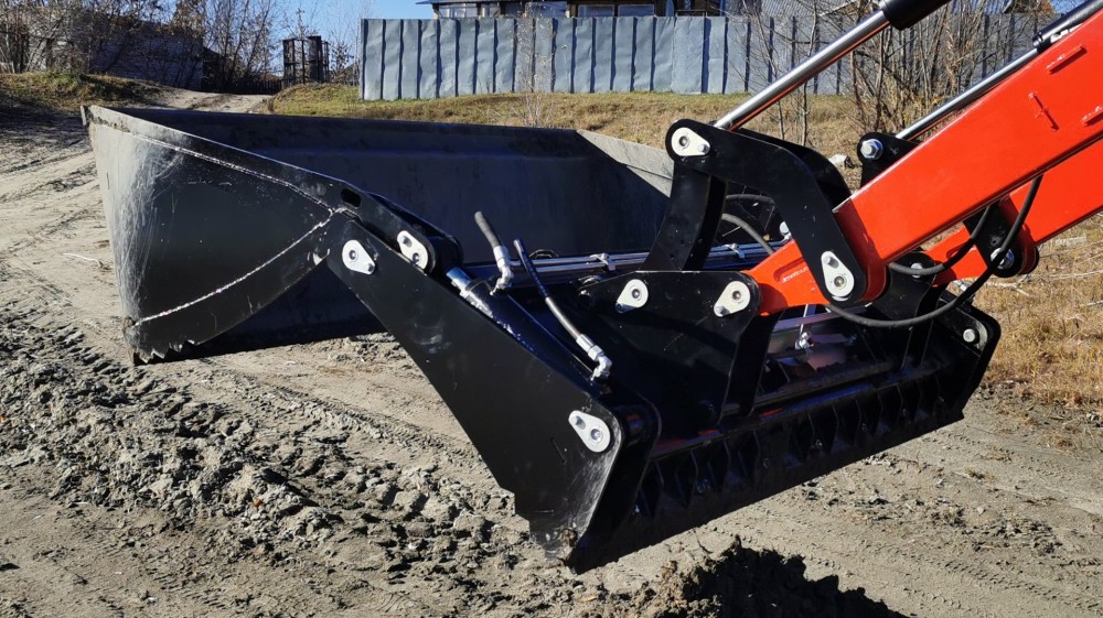 Ковш челюстной предназначен для погрузки сыпучих или кусковых материалов и проведения планировочных работ отвалом. На выбор доступны две системы крепления: